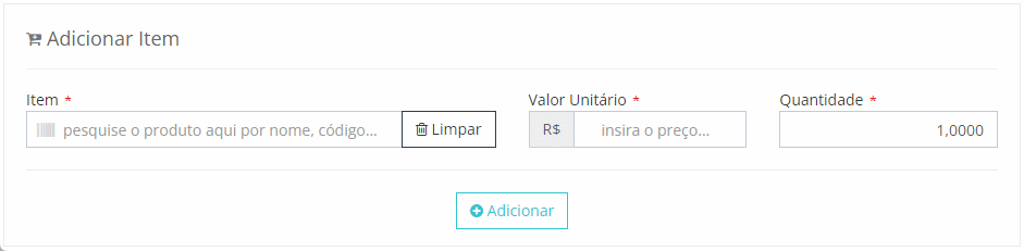 Quantidade: Informe a quantidade deste item a ser incluída no fornecimento do serviço.