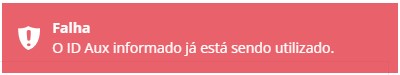 Se mesmo assim salvar um ID Aux ja utilizado irá retornar mensagem de falha ao salvar: