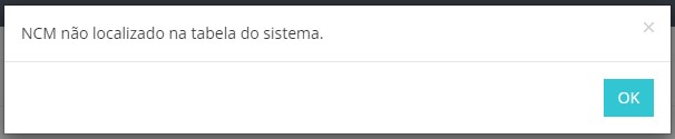 Ao clicar em Consultar, irá validar se o NCM informado existe na tabela oficial, caso não encontre então irá retornar a mensagem: