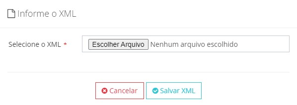 Ao selecionar a forma XML será exibida a tela de seleção de arquivo XML, clique em Salvar XML para confirmar o documento: