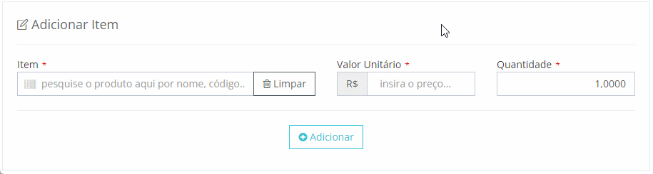 Quantidade: Quantidade de item incluída no orçamento, por padrão traz a quantidade 01.