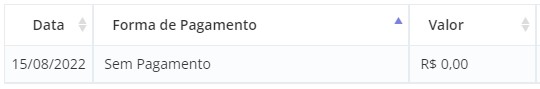 Para adicionar um registro de pagamento Sem pagamento, basta selecionar a Forma de pagamento ‘Sem pagamento’ e então clicar em Adicionar, o registro será adicionado: